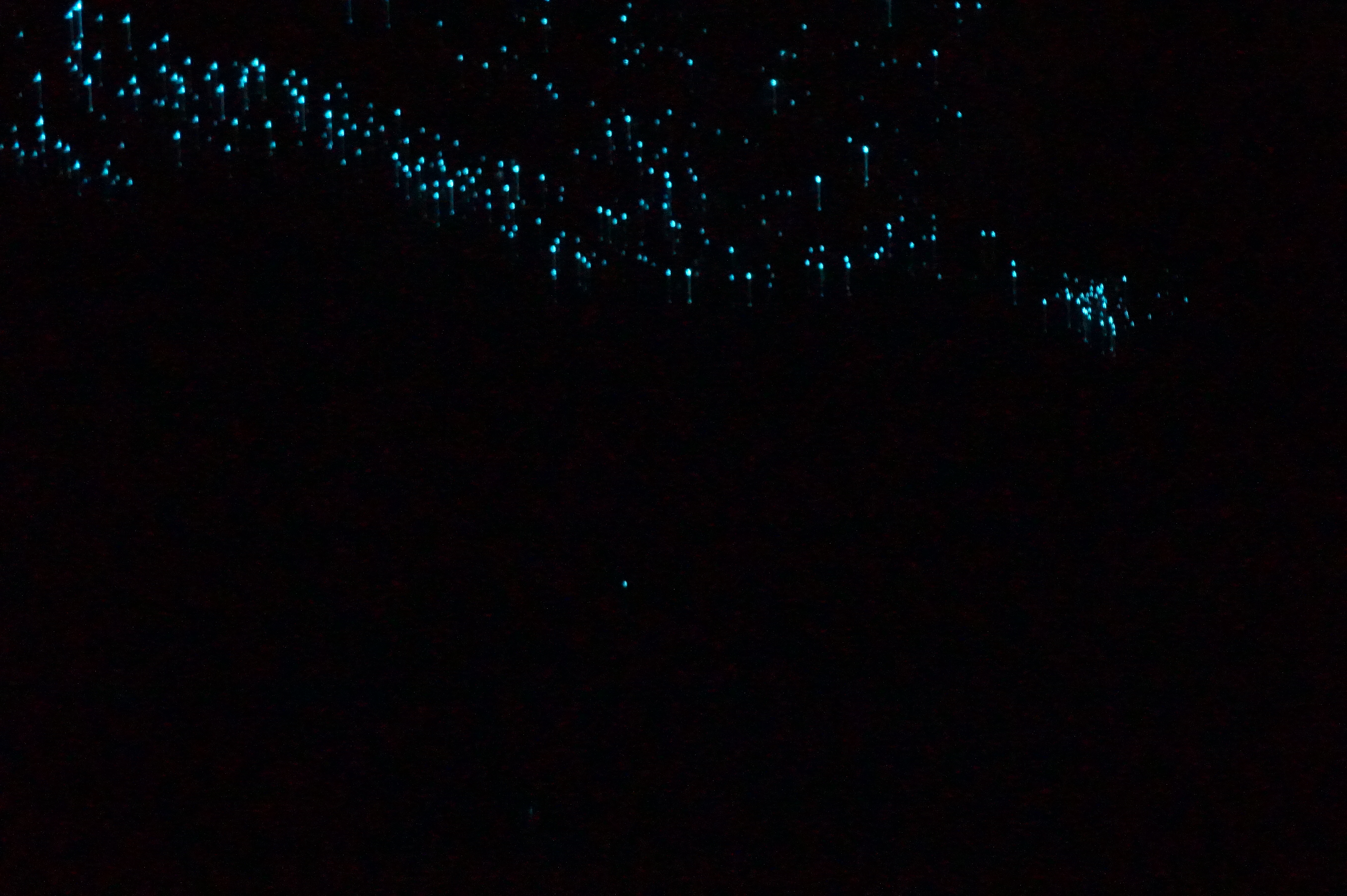 Až po chvíli si uvědomím, že to na co zírám, jsou svítící červi, kteří jsou poseti po celém stropě jeskyně. Anebo ne?