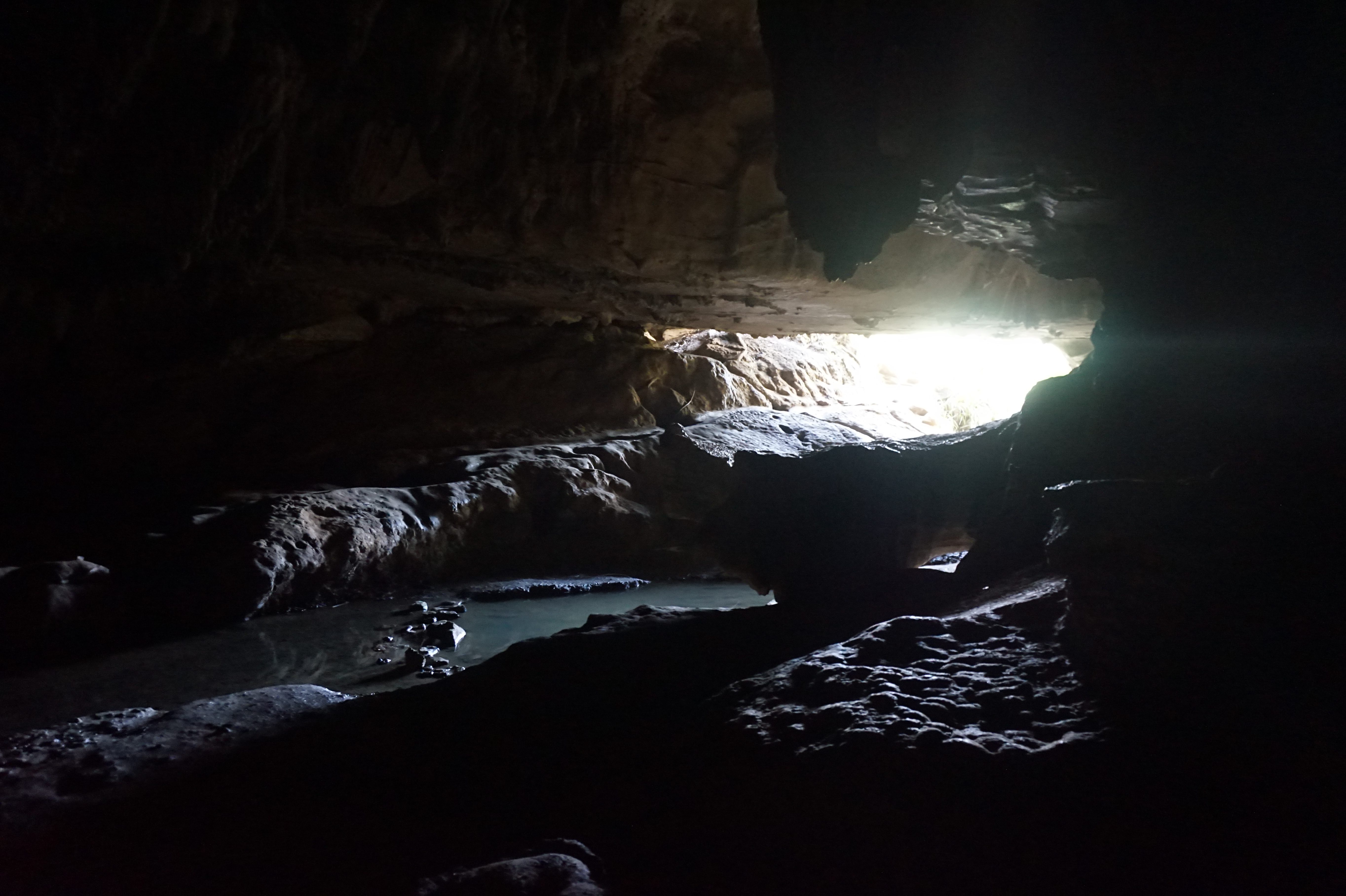 Jdu hlouběji. Přede mnou se rozprostírá obrovský prostor, stalagnáty visící ze stropu, rybníček. Tajím dech, nechci ji rušit. Pokračuji dál po kluzké cestičce, občas mi noha sklouzne do potoka, který je součástí jeskyně. Nevadí. Mokrý nohy usuším, boty vyperu.
