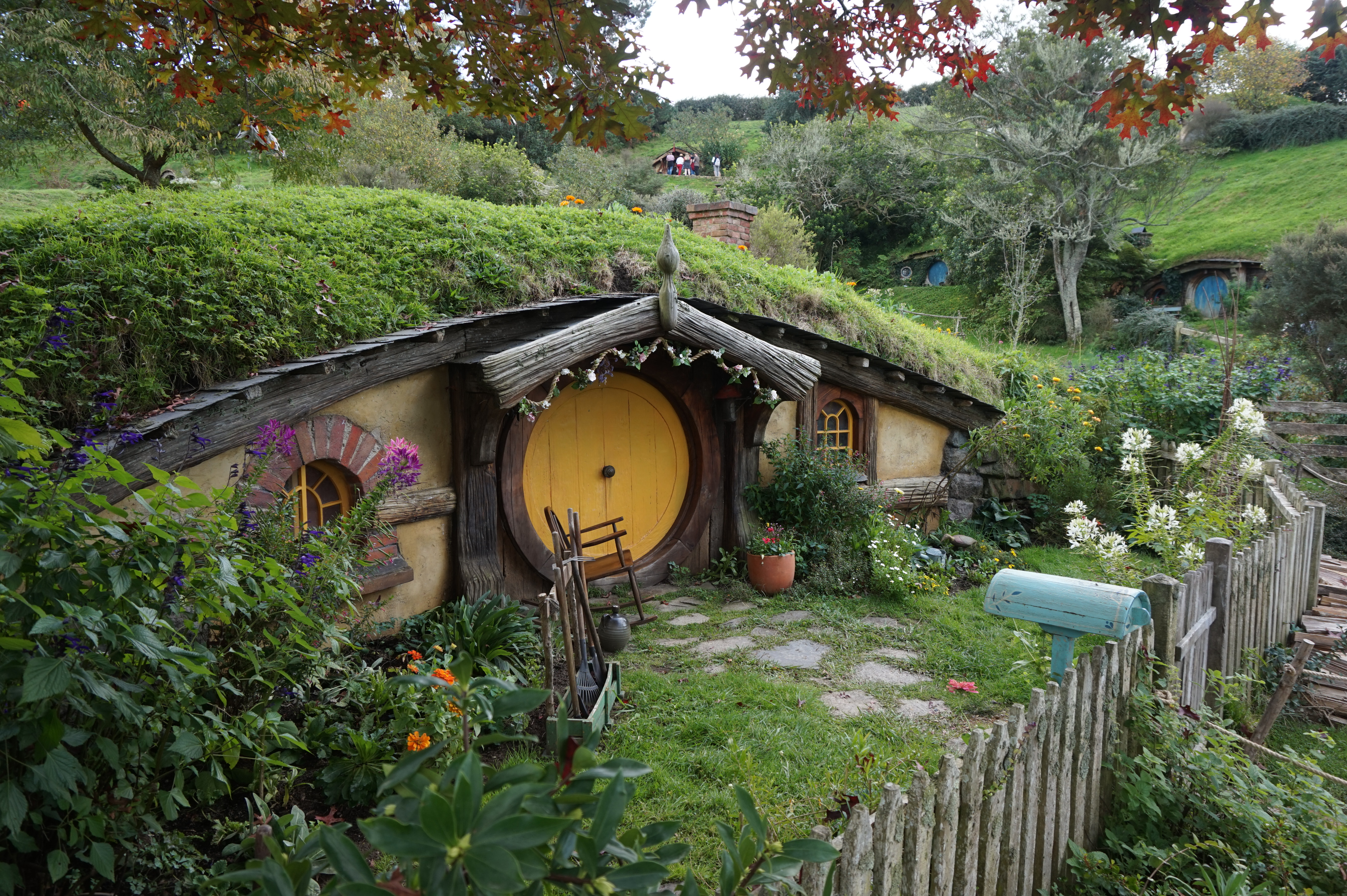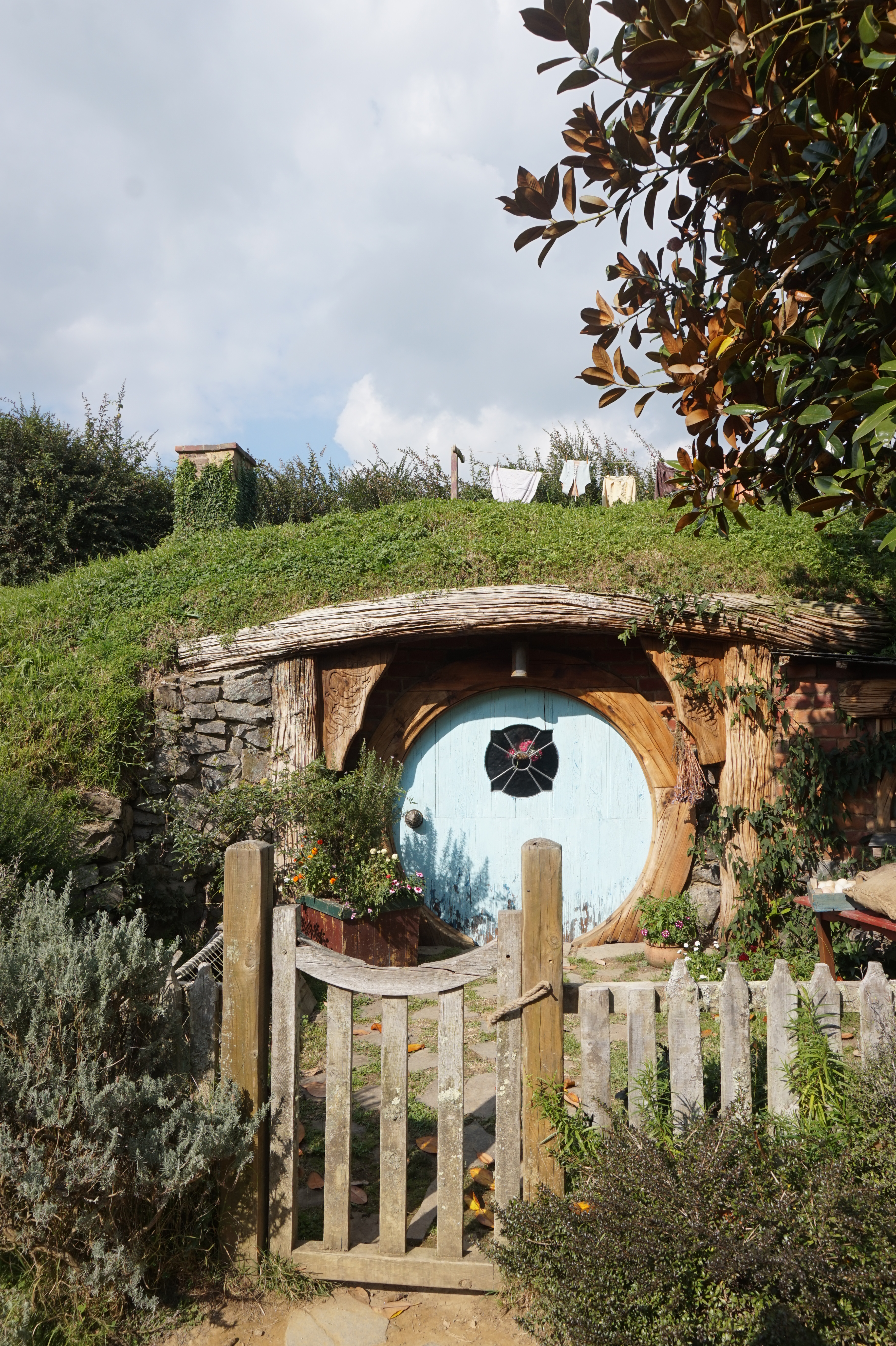 A ačkoliv jsme zprvu nechtěli, navštívili jsme také tolik turistiky oblíbené místo Hobbiton – Movie Set. Překvapením pro mě bylo, že nestačí rezervovat se předem na příslušný čas prohlídky, provést platbu předem, dojet na danou adresu a doufat, že se najde místo k zaparkování, pak se totiž ještě čeká na vyzvednutí autobusem, který vás během pěti minut konečně doveze do Hobitína.