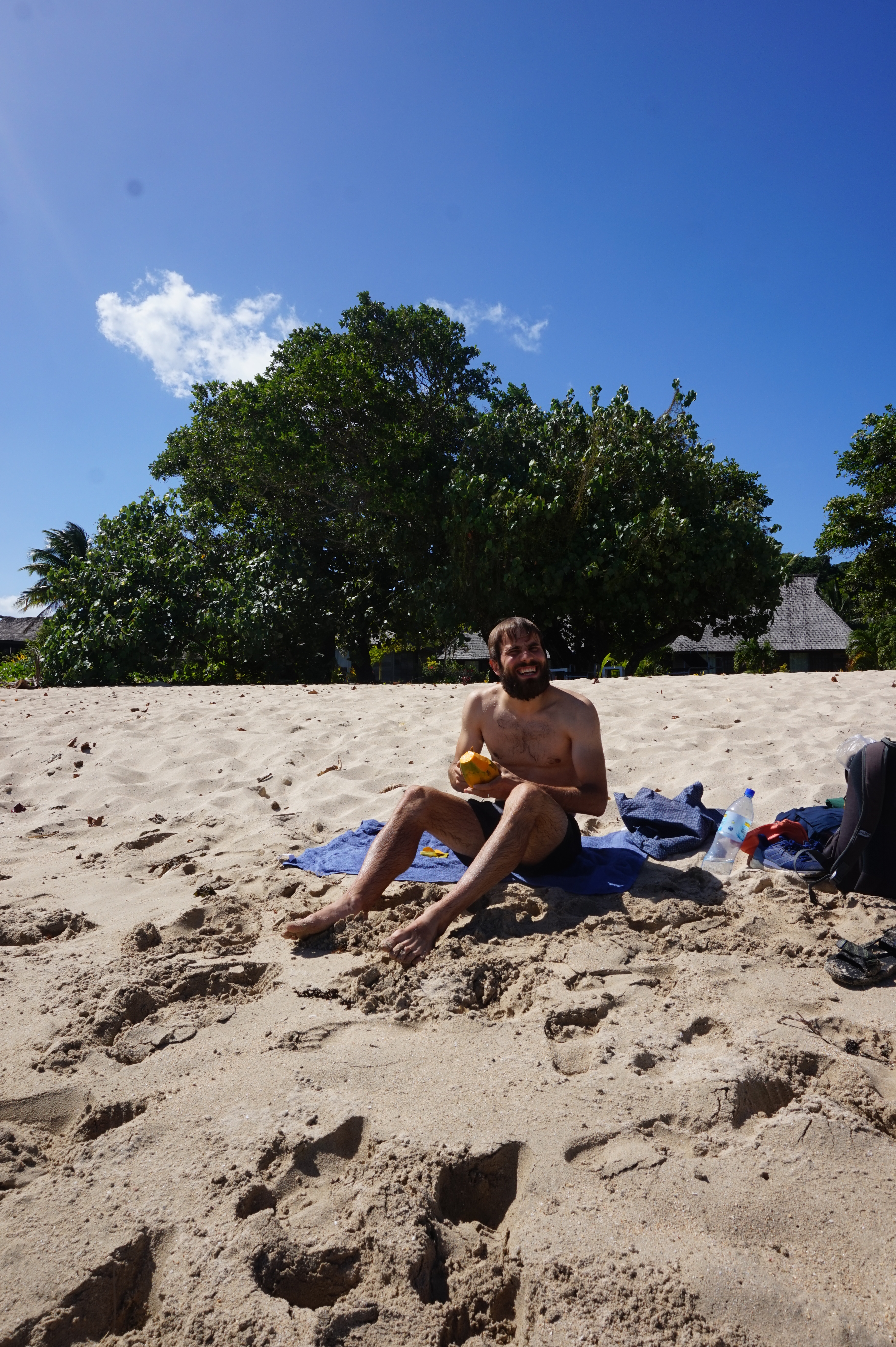 Horší ale bylo, že jsme byli skálopevně přesvědčení (což jsme taky tvrdili recepční), že jsme si zaplatili k pobytu i snídaně. No, ani náhodou Zajíčková a Souček. Takže jsme byli bez jídla, bez kuchyně, bez nádobí, bez příborů. Na pokoji jsme našli rychlovarnou konvici, čaj, kávu, hrníčky a dvě lžičky. Výstup? K snídani vločky a k večeři se podávala specialita šéfkuchaře = instantní nudle s tuňákem z konzervy a se sýrem. Přes den hromady a hromady čerstvého ovoce. Hotelovou restauraci jsme využili jen párkrát kvůli ceně pokrmů (okusili jsme tradiční jídlo Kokoda, což je ryba marinovaná ve směsi z kokosového mléka, limetky a cibule).