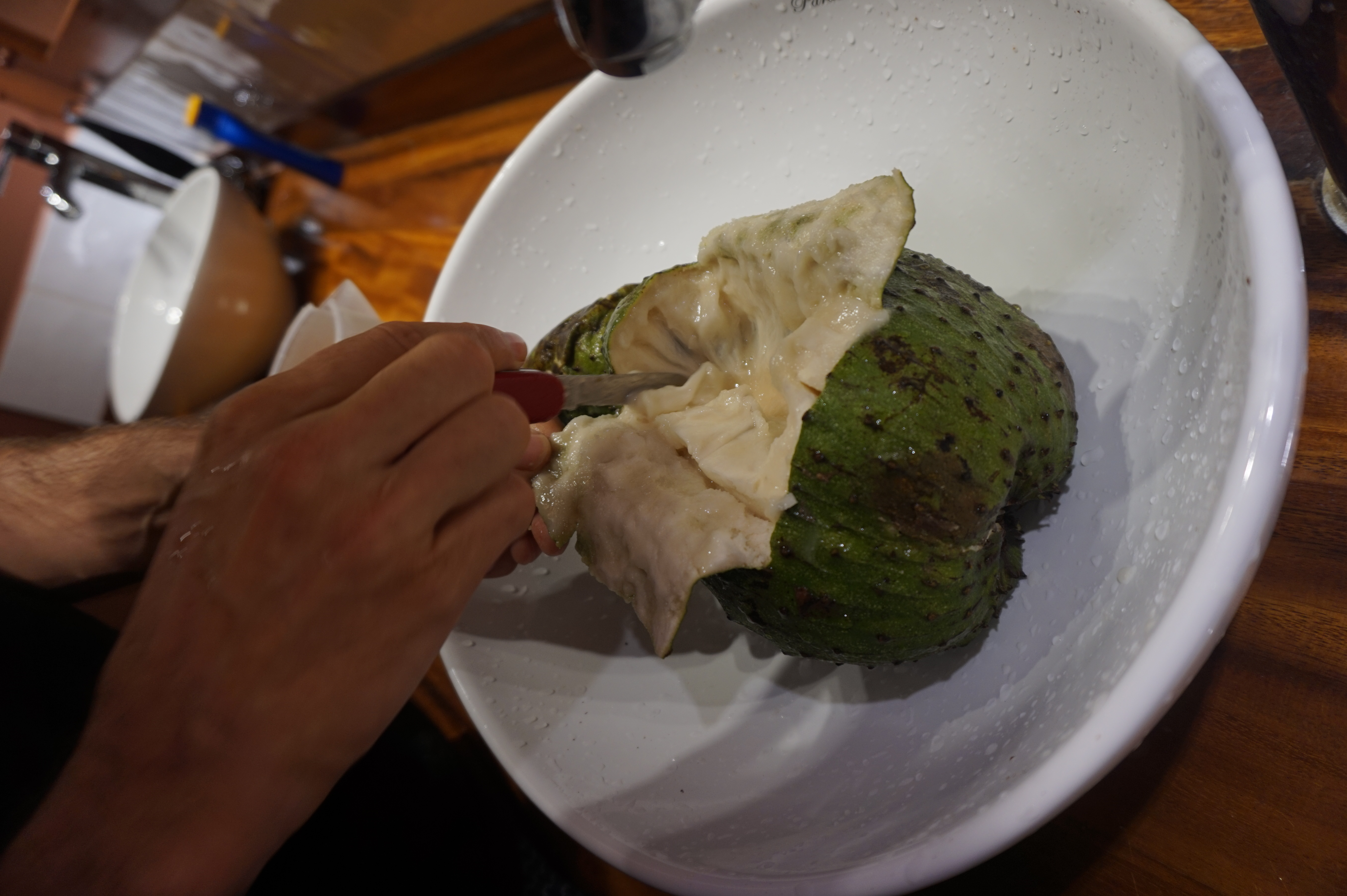 Poprvé jsme ochutnali soar sop, pidi banánky, čerstvou papáju, čerstvý kokos a ananasy, guavu, místní červené pomelo.