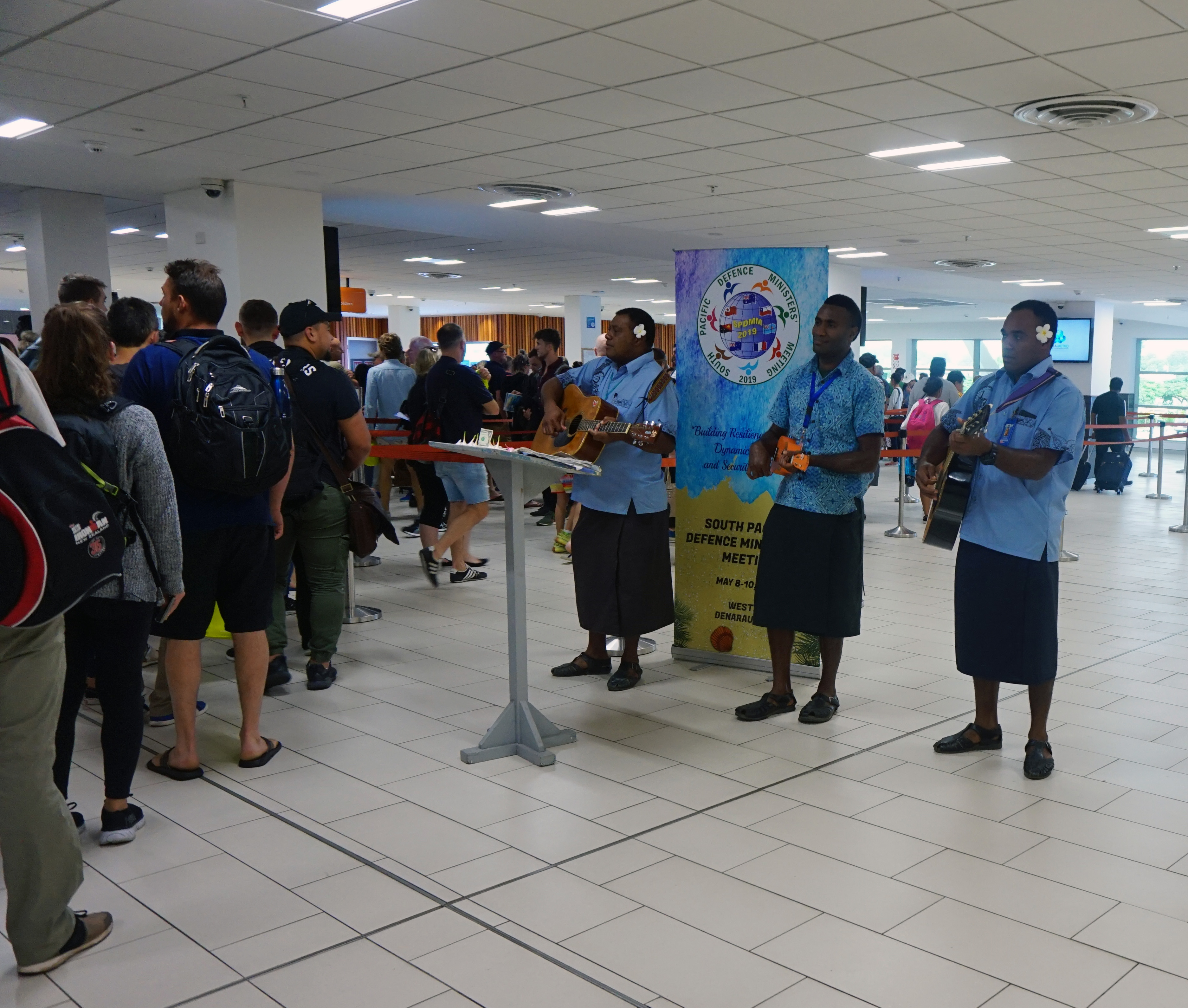 Poprvé mě po příletu na letiště vítala živá místní folklórní hudba. Nicméně přes moje klasické absolutní se odevzdání hudbě mi unikla herečka, která ztvárnila roli Sansy v seriálu Hry o trůny, a která podle všech dostupných a ověřených informací (sdělil mi je Dominik) s námi dokonce letěla a stála hned před námi. Fakt, že jsem si ji nevšimla mi začalo vadit až ve chvíli, kdy jsem si uvědomila, že s muzikanty se na Fiji budeme potkávat úplně běžně (hráli nám na přivítání i loučení v hotelu, k večeři, k vínu, k pivu…příjemný to bylo) – nicméně Sansu na dosah ruky mít už asi nikdy nebudu. Naštěstí nejsem skalní fanda Her o trůny, takže vlastně o nic nejde, vytvořila jsem tady zbytečný drama a protáhla článek o zbytečný odstavec.