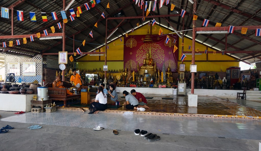 „Ty myslíš určitě ty pány, co potkáváme v ranních hodinách, viď? Tak to jsou mniši a těm prostěradlům se říkají roucha. Tito mniši se vzdali veškerého svého majetku, jsou živi pouze za almužnu, kterou získají od lidí, kteří se s nimi modlí. Mnichem se většina mužů stává jen na přechodnou dobu – alespoň tříměsíční a to ideálně v době mezi studiem a svatbou, před 20 rokem svého života. Věří, že si tím vylepší svojí karmu a v Thajsku dokonce existuje něco jako placená „mnišská dovolená“. Thajci mj. věří v převtělování a znovuzrození ve vyšší inkarnaci (pomyslný žebříček reinkarnací začíná inkarnací ve zvíře, potom následuje inkarnace ženy, pak muže, mnicha a na úplném vrcholu se dočkáme osvícení a vstupu do nirvány)“.