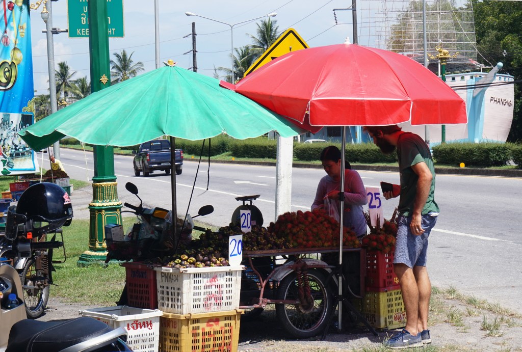 „Holky, na co dneska máte chuť? Co takhle si dát stilenek nějakého lokálního ovoce? Chcete dragon fruit? Snakefruit nebo si zase zajedem do Pad Thai shopu na Pad Thai?“ (= smažené nudle s masem nebo bez, posypané oříšky a zakápnuté limetkou, kdy dochucení/chilli záleží na konkrétní chuti strávníka. V našem nejoblíbenějším bistru (Pad Thai shop), kde jsme po jeho objevení byli i dvakrát denně, přidávali do pokrmu čerstvé klíčky, bylinky. Jejich Pad Thai jsme střídali s delikatesním krabem s rýží).