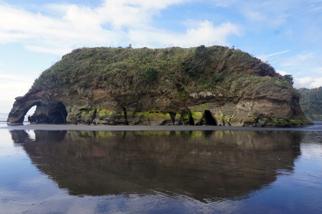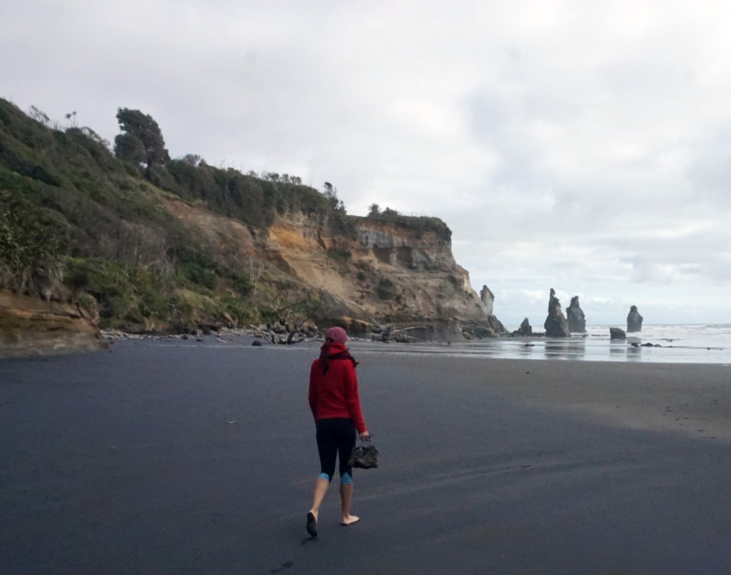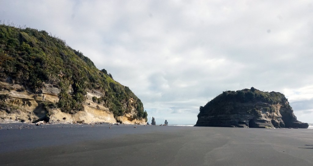 Ani další den jsme nezaháleli a vypravili se na prochajdu do Mangaotaki scenic reserve bushwalk, která byla sice taková průměrná a krátká, ale tady má i průměr vysokou kvalitu. 🙂 Krátkou zastávku si zasloužila i Mokau black sand beach a velkou zastávku skalnaté útvary na břehu oceánu – Three sisters a The Elephant.