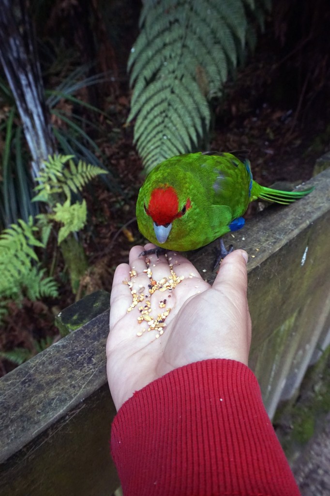 Následujícího dne jsme jeli konečně okouknout kiwi ptáčky do Otorohanga Kiwi house and Native Bird Park. Smířeni s tím, že jsou ve volné krajině téměř k nezastižení (aktivní jsou pouze v noci a je jich jako šafránu) jsme vzali zavděk i s jejich nepřirozeným prostředí – přírodní rezervací. Z mého pohledu jsou to dosti křehcí ptáčci – mají uzoučký zobáček, jemný peříčka, malí nožičky a nelítají. Není divu, že jsou tak ohrožení. Jediný co je na jejich těle trochu robustnější jsou jejich prdelky. Tělo mají ve tvaru hruštičky a do samiček se vejdou neskutečně velký vajíčka. Tvar v podstatě kopíruje polohu teoreticky uhnízděného vejce. Jsou to takoví skořápky na vejce. Den jsme zakončili v dalším fajn campu za 5 NZD/noc – Piopio freecamp.