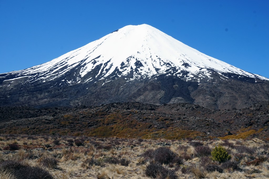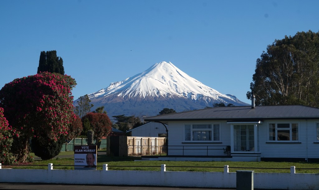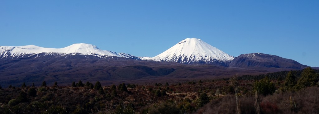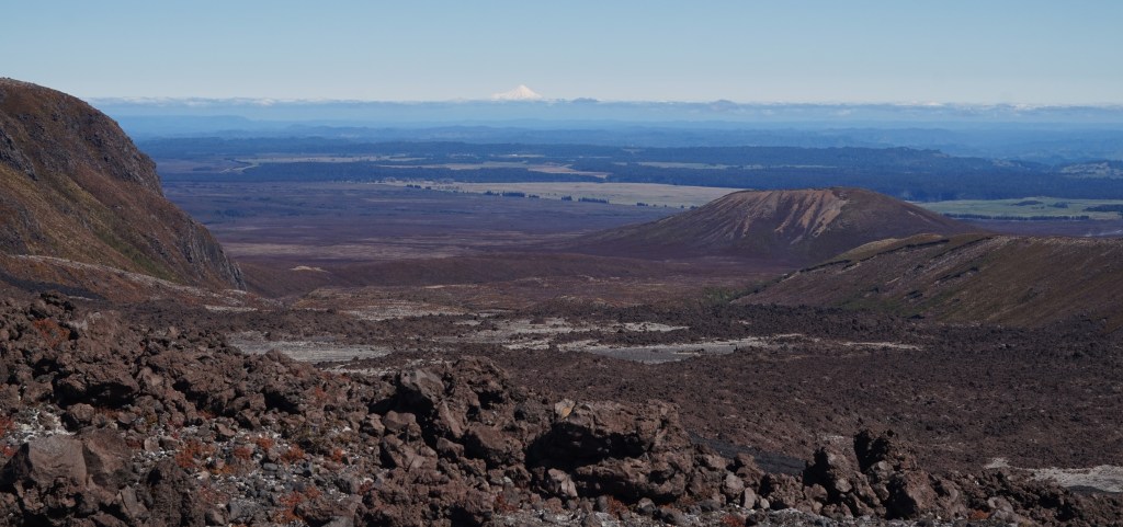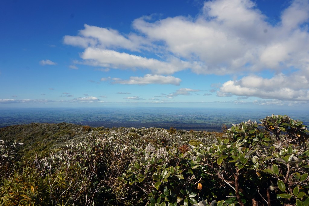 Nicméně abychom se nepřejedli pláží, chtělo to uskutečnit změnu. Ideálně skočit z minimální nadmořské výšky do nejvyšší možné, která se nám tyčila na dohled. Této úlohy se na jedničku chopil Egmont National park se svojí nejvyšší horou Mount Taranaki (2 518 m). Samotný národní park je v podstatě prstenec, který jednak značí oficiální hranice parku a druhak přesně značí ohraničení, rozdělení mezi pastvinami a úrodnou půdou. Podle NZ patří tato oblast k nejplodnějším i díky sopečnému popelu, který je prý bohatý na živiny.