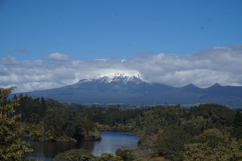Cestu do vyšších nadmořských výšek jsme si zpříjemnili projetím města New Playmouth, navštívením přenádherných Tupare garden a vyhlídkou na Mt. Taranaki od Mangamahoe lake.