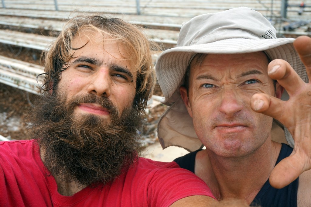 Dominik: „Bolí mě záda, ruce a nohy, ale jinak se cítím lépe než třeba po kiwi prunningu. Jinak ale v pohodě, člověk je takovej unavenej, má chuť si už jen po práci sednout a šíleně mě chutná jídlo. Snad víc než normálně. Nepřetržitě a hodně jím. Je tady pěkný výhled, pěkný kytičky. Je vtipný, jak nám vysvětlují jak máme dělat i ty nejzákladnější věci. Je sranda si nechat říkat i ty věci, který jsou jasný, je to takový dost pohodlný. Zajímalo by mě, jaké má o nás Francis (majitel skleníku) mínění.“