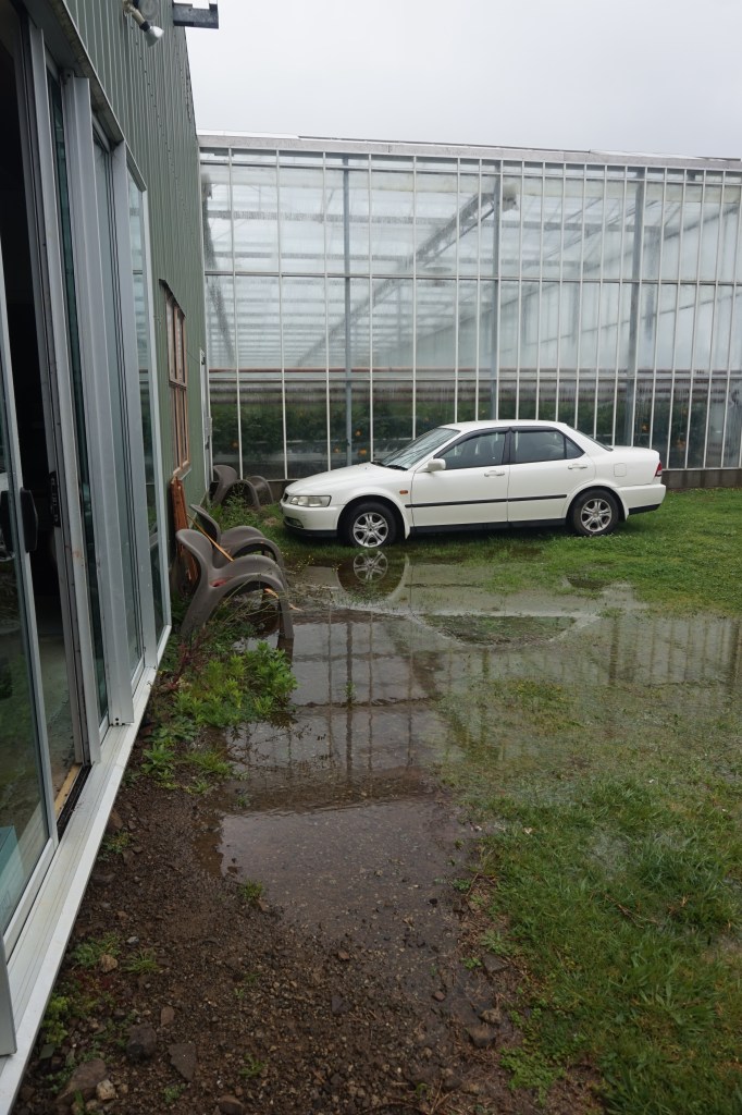 Skleník, to je stejně věc. Téměř celá blyštivá konstrukce se skládá s průsvitného skla (kdo by to byl býval tušil:D) a když nám tu zafučí, což je na NZ na denním pořádku, mám pocit, že se skleník nad našimi hlavami musí každým okamžikem vysklít. Když tu zaprší, chystáme lavory na záchyt kapající vody. Když vysvitne na milisekundu NZ sluníčko, mám pocit, že mi sežehne kůži během pikosekundy a dýchatelný kyslík vydrží už jen pár minut. Nemusela jsem ani dlouze přemýšlet, jestli se člověk může ve skleníku spálit, jak rychle se mi dostalo odpovědi. Obdivuji stálé zaměstnance pracující v tak obrovských sklenících během letních měsíců.