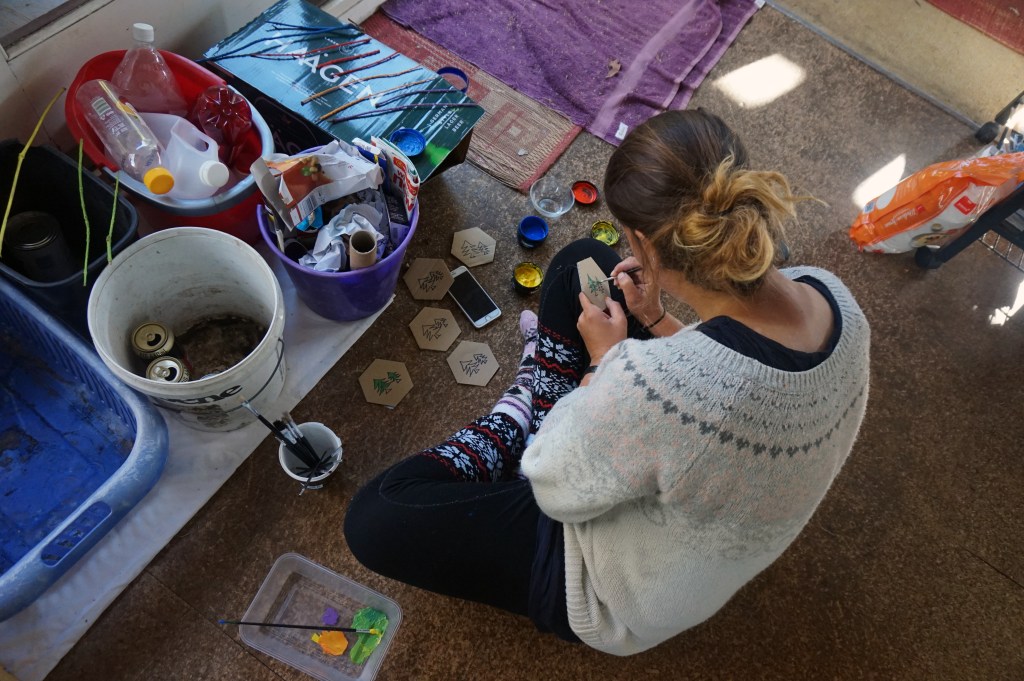 Snad nepřepálíme začátek, když ráno ještě se zalepenýma očima tvoříme Osadníky z Katanu z kartónu od piv (těch máme totiž požehnaně). Téměř všichni se snaží něčím přispět.